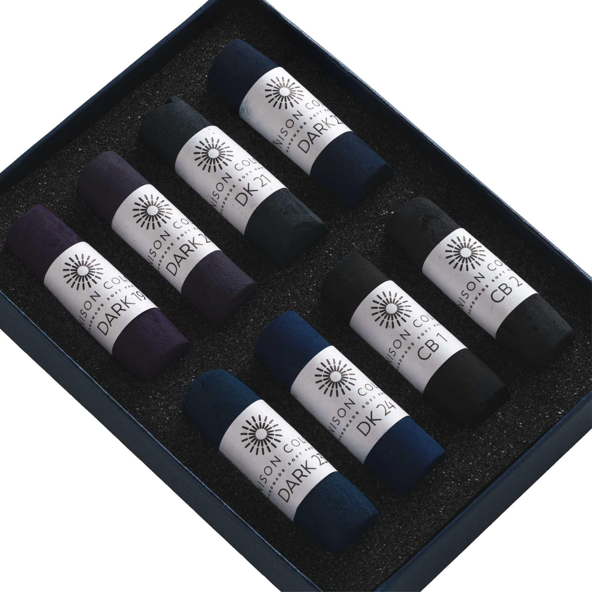 The Midnight 8 set is an extension of our Dark range, created by the colour experts at Unison Colour. We partnered with Australian artist, Chris Blake, to create Dark 19 and 20, and with British artist, Robert Dutton, to create Dark 24, which was an exploration into the deepest blue that we make. If you’re looking for a beautiful Prussian Blue in a soft textured pastel, then you’ve just found it. And not only that, to compliment it, we created Dark 22 and 23 by taking Dark 24, and increasing the red and green channels, to give you that perfect suite of intense, deep blues.