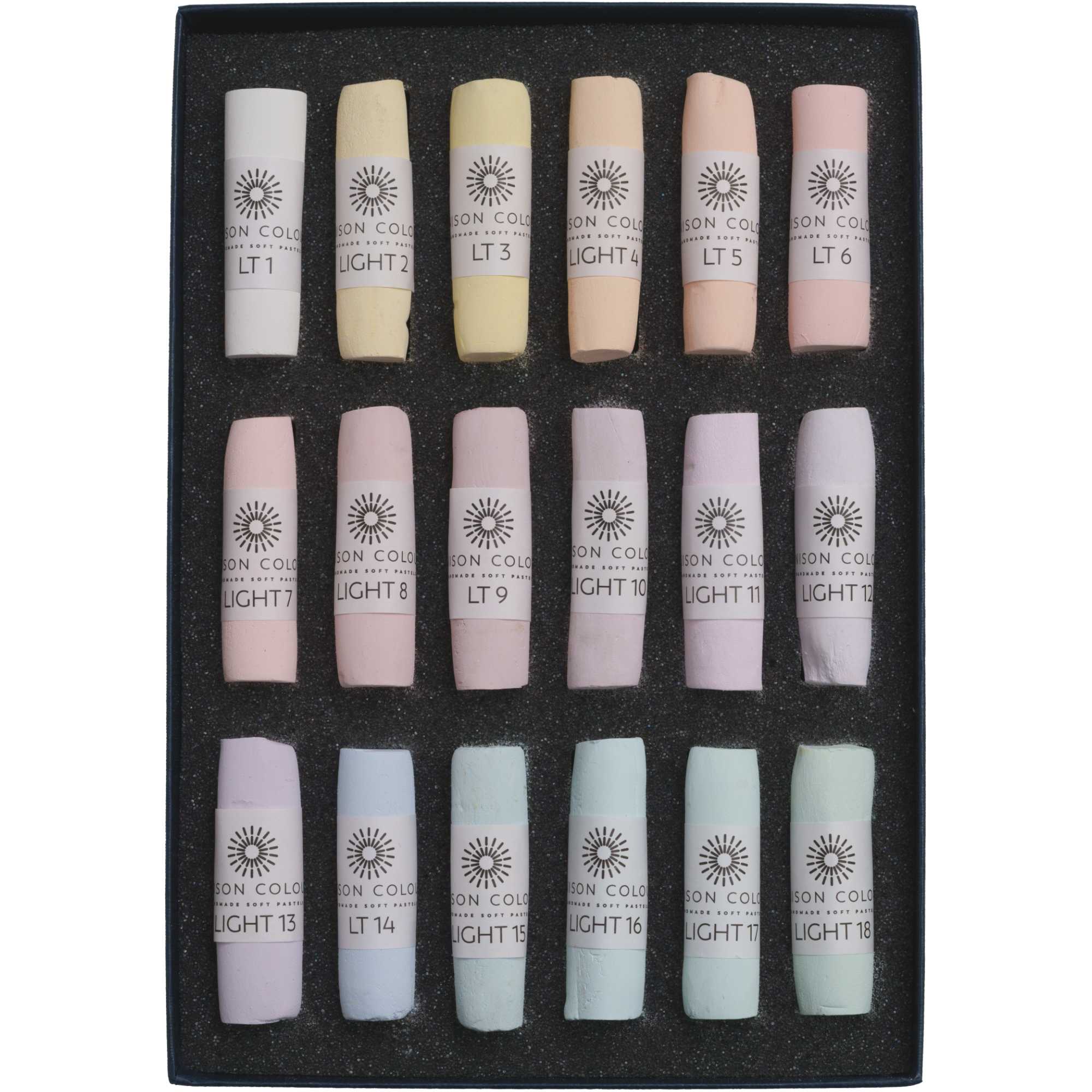 Our Light 18 in Small Stick size, specially selected by Unison Colour. This set contains the colours from our exclusive range of Light pastels. Unison Colour Soft pastels allow for ease of use with a highly blendable texture.